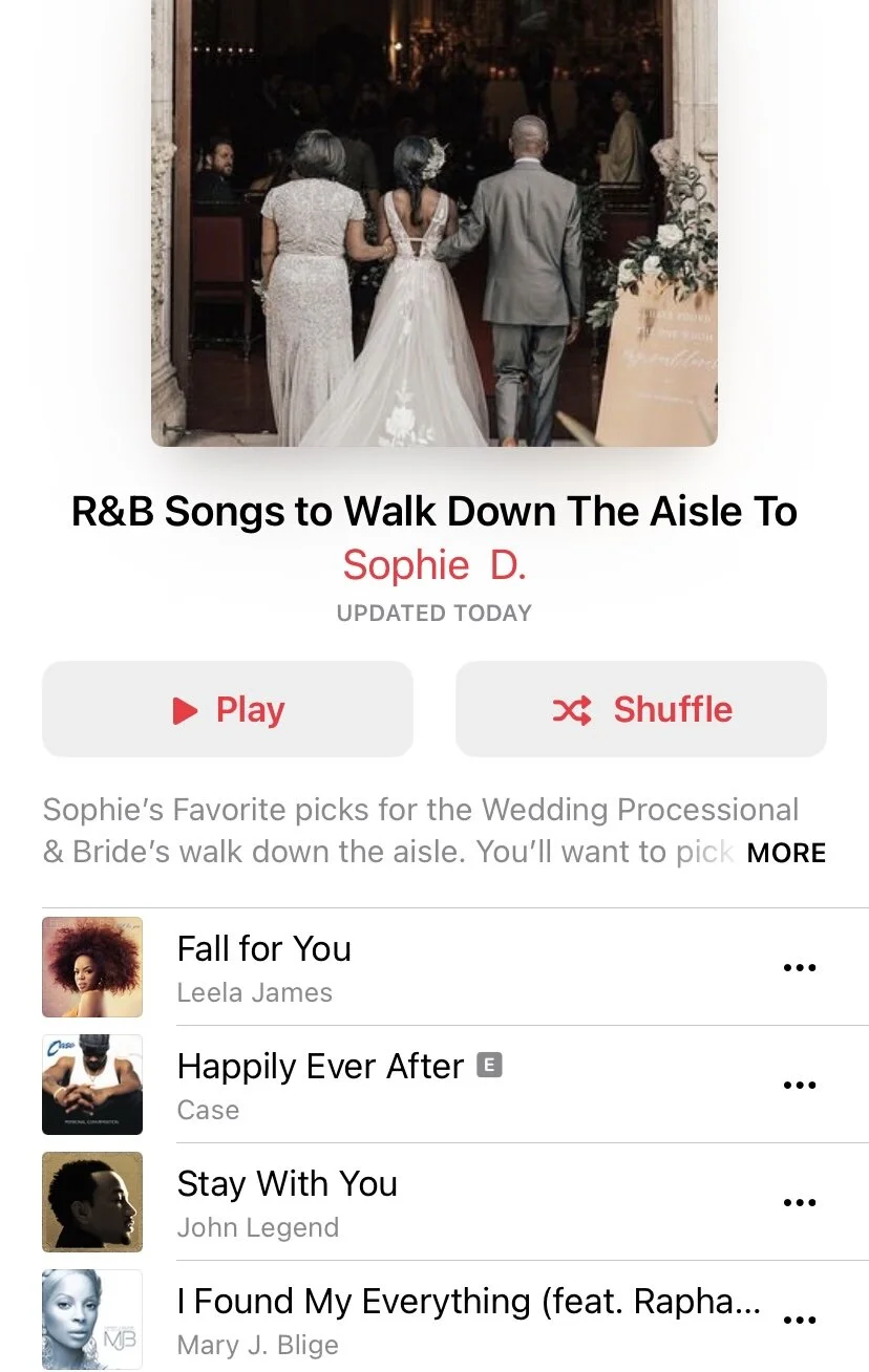 I added my all-time favorite songs that I believe are perfect for the Bridal processional to my Apple Playlist, R&B Songs To Walk Down The Aisle To. Pick a song that best fits your personality and wedding style, write it down on your wedding song list sheet ($12 downloadable pdf), and practice your walk down the aisle. I’m Wishing you the best of Luck!