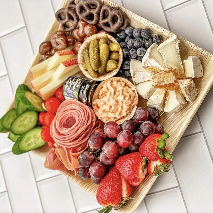 Bring the Sophistication to your Socialite experience. Your Squad will feel so fancy picking from a beautifully hand-crafted charcuterie board filled with nuts, chocolates, meats, cheese, and plenty more.