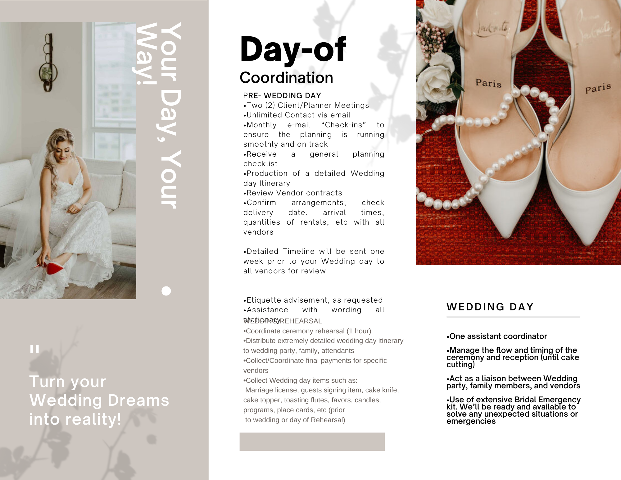 Inquire Today Day-of-Coordination is for the couples who have taken care of all of the logistics and planning for the wedding day, but would like a professional to help manage the flow of activities the day-of. book a consultation