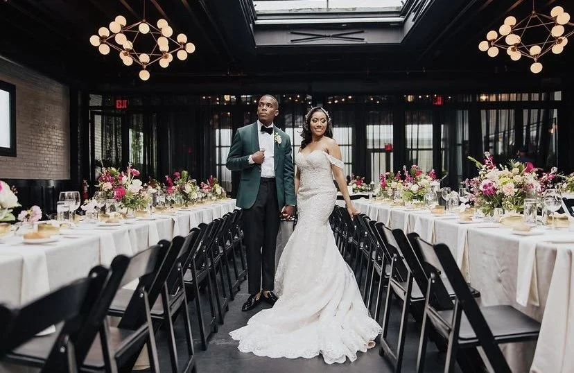 501 Union is an industrial-like space for bespoke private events. Paired with their exceptional service, guests can enjoy three distinct spaces within the venue: a covered atrium, an elegant cocktail lounge, and a light-filled reception hall. Locally sourced design elements include Modo chandeliers by Jason Miller, customized Flavor Paper wallpaper, and a vaulted skylight that runs the length of the main gathering space reflect the best of old and new Brooklyn: industrial chic with a touch of modern glamour.